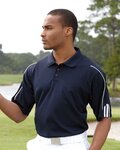 Super cool polyester pique knit with contrast color three-stripe application detail on the sleeves.